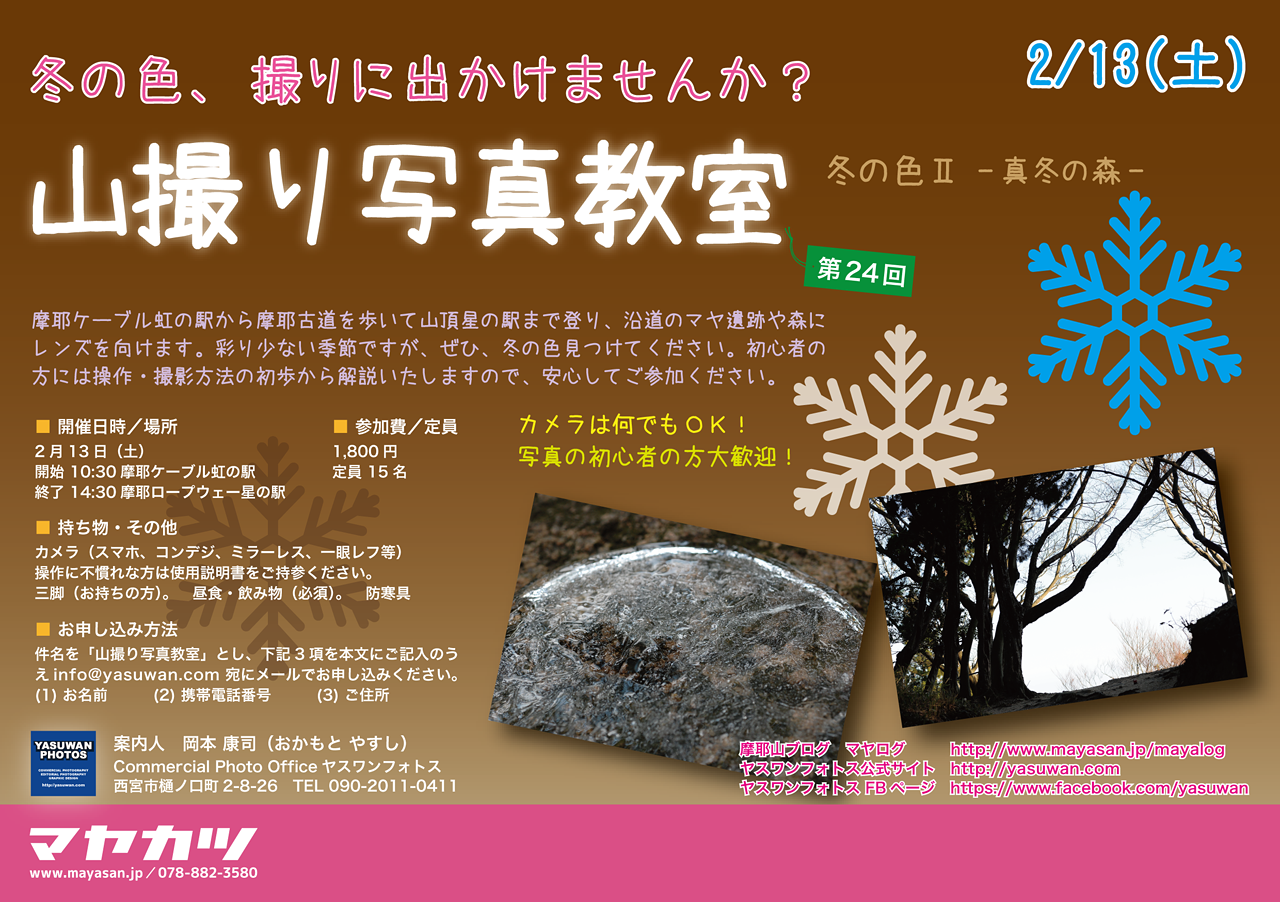 ヤスワンフォトスのホームページ( URL http://yasuwan.com )、Facebookページでもお知らせします。