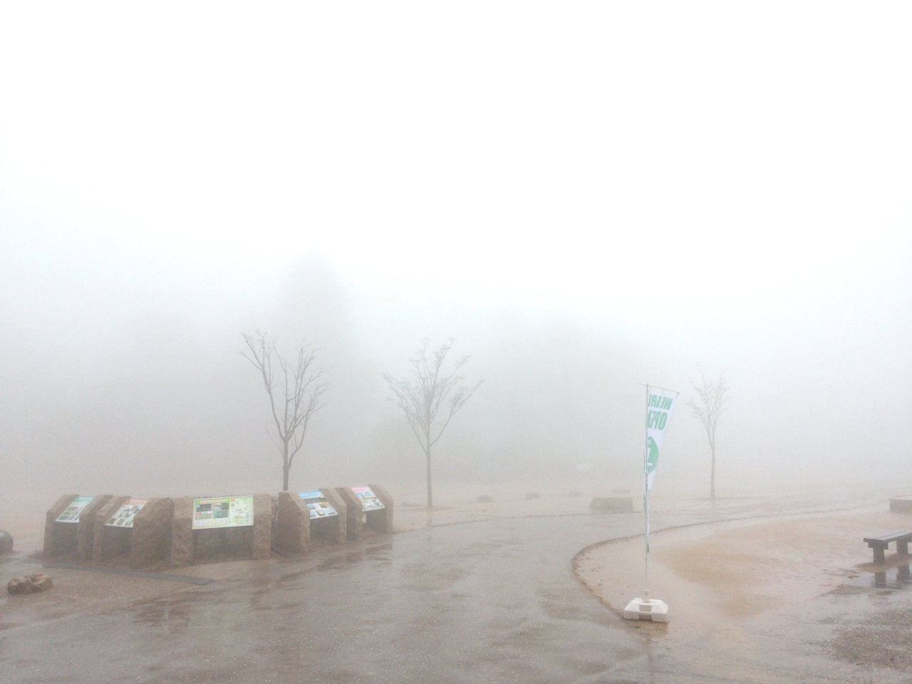 掬星台は霧で真っ白になり、麓もベイエリアも見えなくなりました。